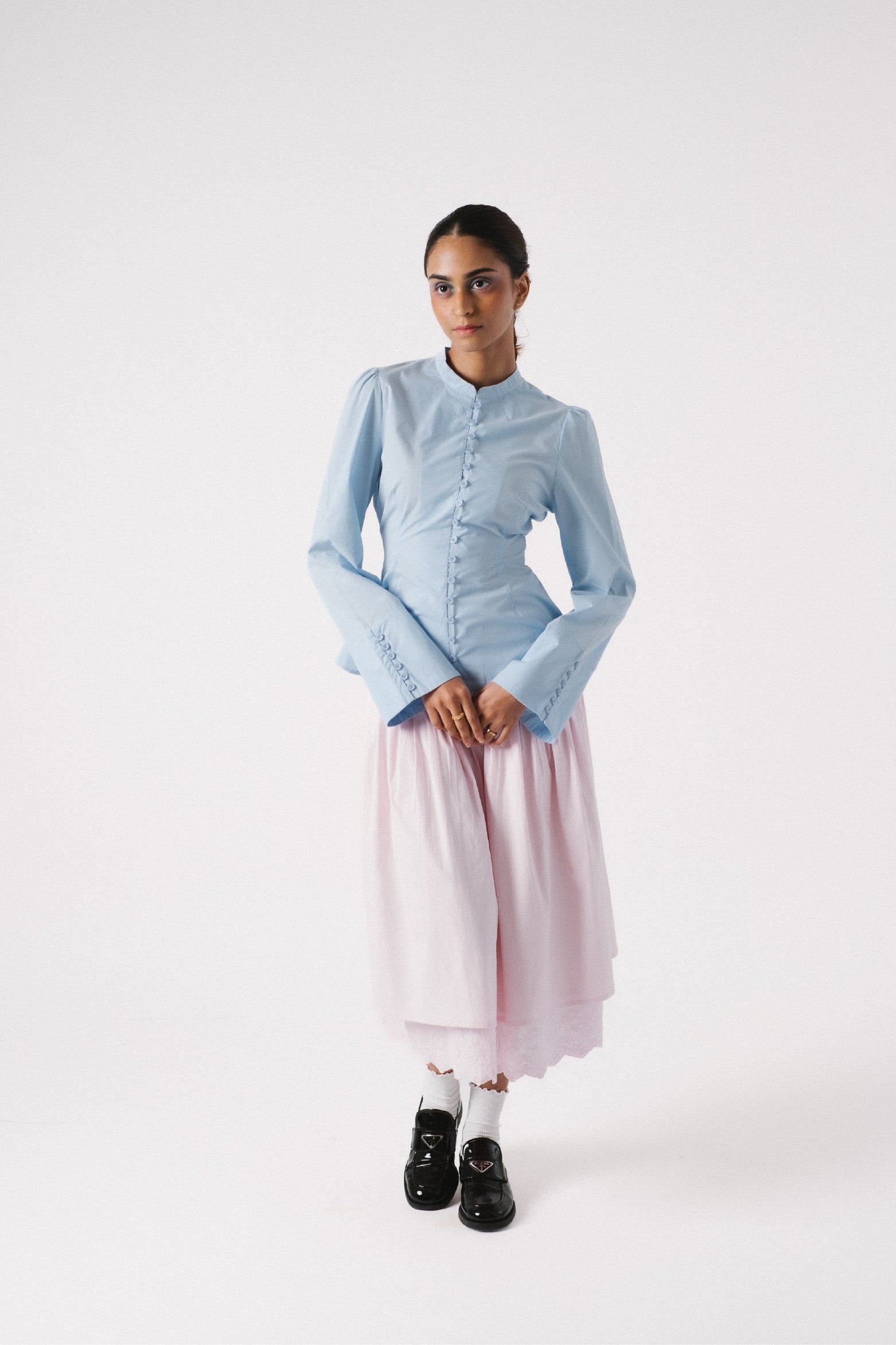 What’s baby blue and seems so certainly that it’s growing out of you? The Growing Out of Your Sleeve Poplin Shirt… Duh!